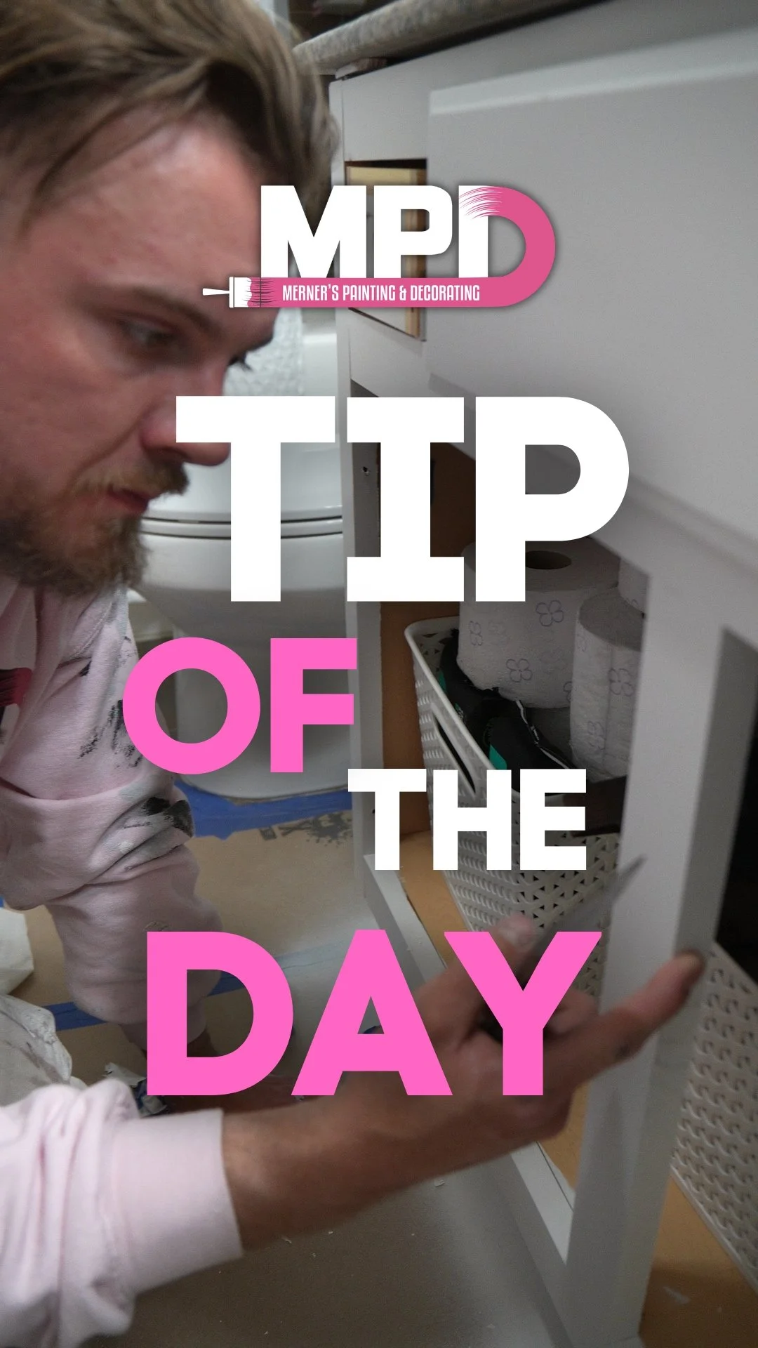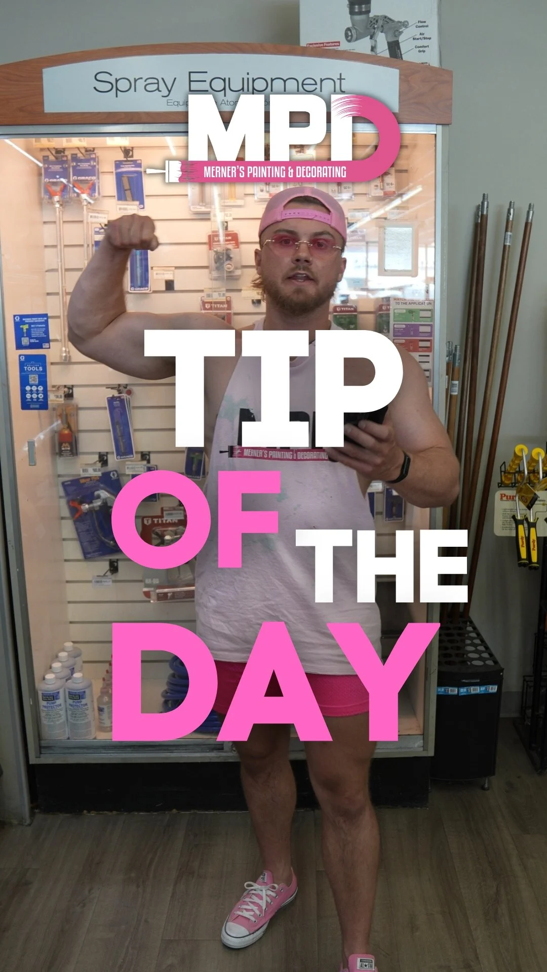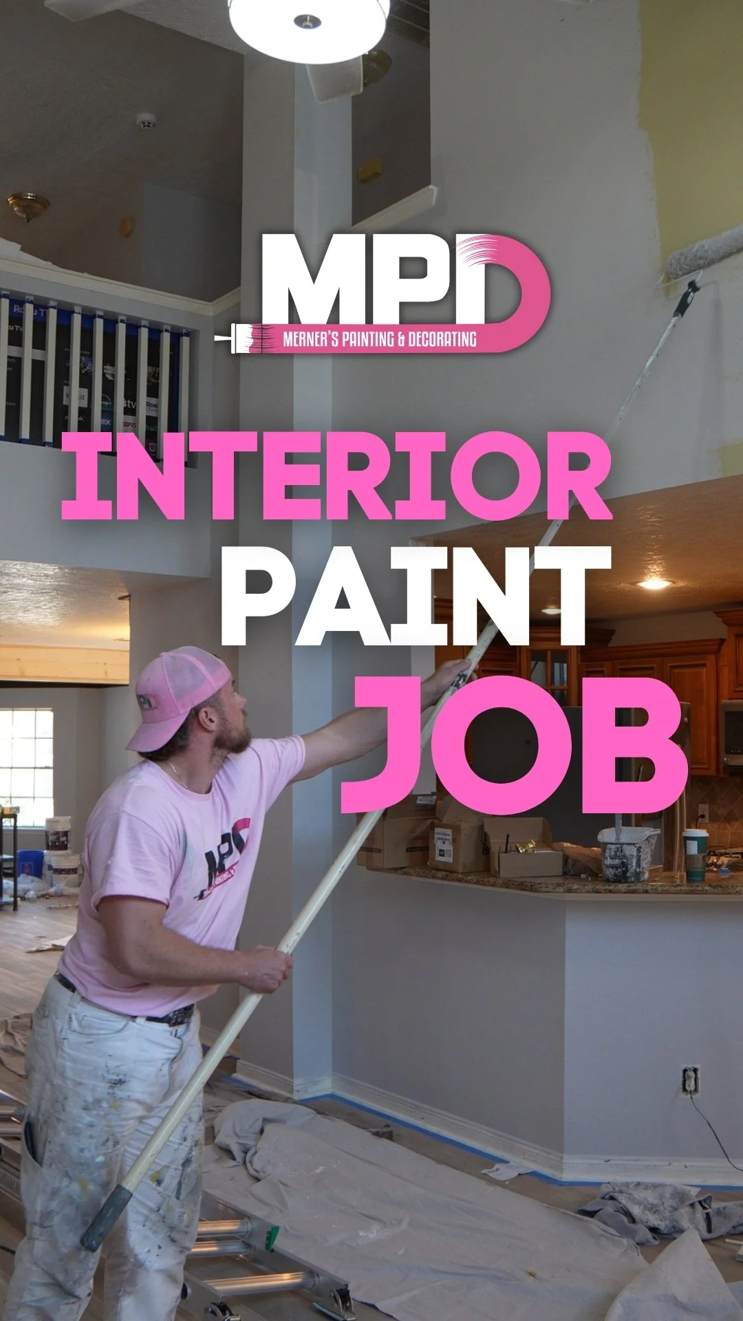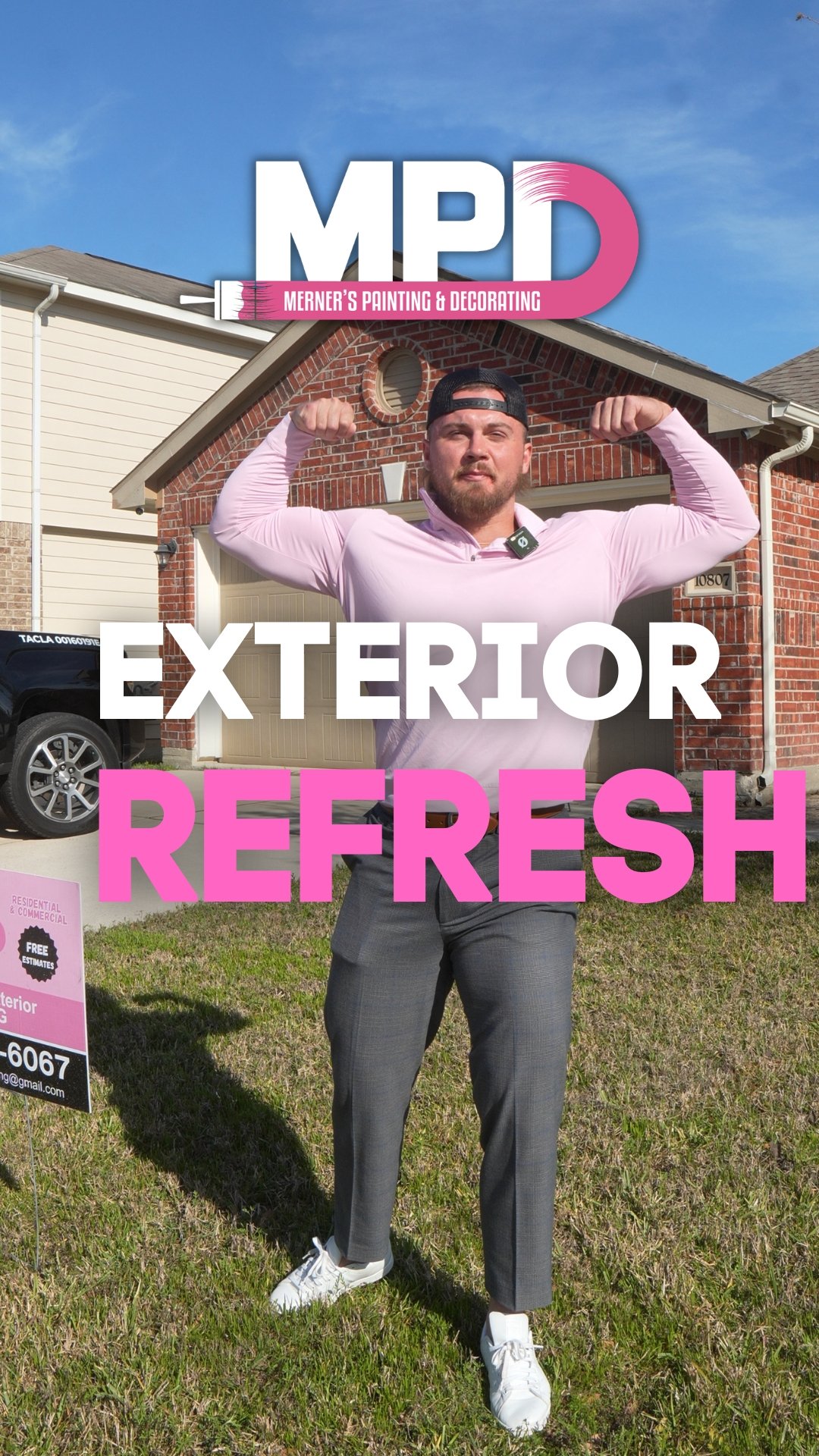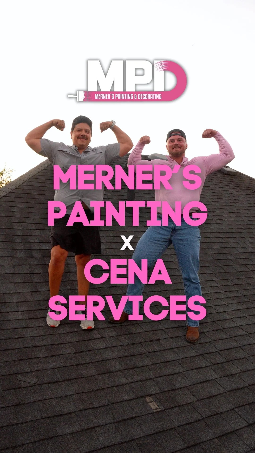 Logo for Merner's Painting and Decorating featuring large black letters 'MPD' and a pink paintbrush with black bristles. The company's name and services are written on the brush.